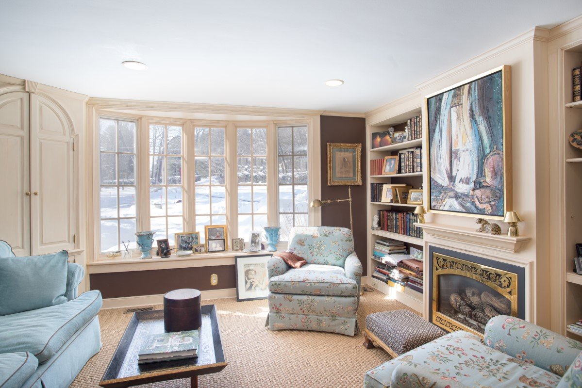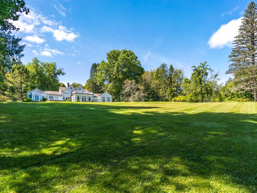 The water views from this Salisbury-Lakeville Colonial built in 1940 are as spectacular as the house itself. The main home has four bedrooms and three-and-a-half baths, and has been renovated over six park-like acres. There is a sunken living room, a library, study, dining room, family room/kitchen and mudroom along with a primary suite on the first floor. The second floor has the other bed and bathrooms, plus media and fitness spaces and an outdoor terrace. The 200 feet of direct water frontage of Lakeville Lake includes a seasonal summer cottage. Listed at $2,595,000 by Elyse Harney Real Estate.