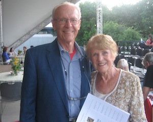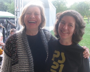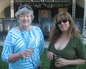 Rachel Louchen reports from Chatham. High up on a mountain underneath a giant tent, PS21: Performance Spaces for the 21st Century presented the first-ever Fashion InTENTsive, a fundraising event on Saturday, July 5 to support its summer programs. The evening showcased clothing from PS 21's own Rewraps, located on Main Street, which resells used clothing to benefit the organization. With the help of longtime volunteers and friends of the not-for-profit, numerous locals appeared as models and performers. Now in its ninth year, PS21 has a full season of diverse events planned for the summer, including the popular Movie Tuesdays underneath the stars, and live music and dance classes, which have been drawing a diverse turnout. Alan Chartock, Director of WAMC radio, who is a longtime friend of founder Judy Grunberg (seen above with Johnna Murray, Rewraps Manager and event advisor) served as auctioneer. Valatie resident Amy Freinberg-Trufas was the fashion segments director and taught the local novice volunteers how to do their little turn on the catwalk.
