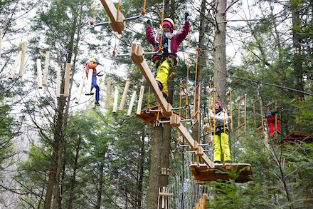 Safety is a given; the full-body harnesses have a safety system, and everyone wears a helmet. There are staff operators on each of the platforms and others monitoring action on the ground. Those who would rather be earthbound are welcome to just walk the trails, and parents can follow their kids and take pictures from down below. Feronia is serious about its mission to sustain forests, and sees its future in education. Its Feronia Forest Fund is a nonprofit created with the mission to connect youth with forests and their ecosystems, and the funds are being used to bring inner city schoolkids to the Berkshire woods. As an extension of its “sustainable full forestry" mission, Ramblewild leases part of the land to the owner of the Berkshire Wind turbines on Brodie Mountain. There’s also a maple syrup operation (with 110 acres of tubing and 7,500 taps), with the sap being processed at Ioka Valley Farm just down the road. Plans to install solar panels near the turbines are in the works.