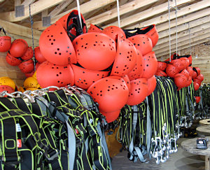 Harnesses and helmets ready for a crowd.