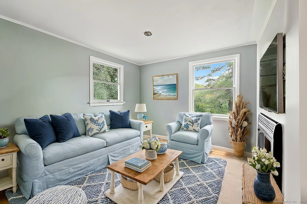 A diminutive cottage in Sharon offers water views and access to Mudge Pond.