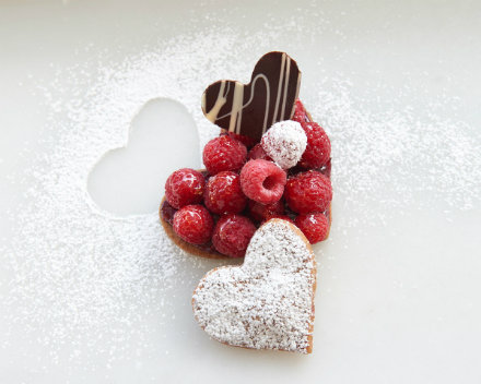 2. Position rack in the middle of the oven and preheat to 350 degrees. Line a sheet pan with parchment paper. Roll out the dough to 1/8 inch thick. Using a 3 1/2-inch heart-shaped cookie cutter, cut out the tart bottoms. Transfer to prepared pans and refrigerate the hearts about 30 minutes. (At this point you can freeze them covered with plastic wrap.) 3. Bake until the edges of the cookies are lightly browned. Cool completely on the pans. 4. Spread about 1 teaspoon of the raspberry preserves onto the cookies. Arrange the fresh raspberries on top. Just before serving, sift confectioner's sugar over the top. There are more recipes and pastry ideas on the Mado Patisserie website. Photographs by Michel Arnaud. Related story: Mad for Mado.