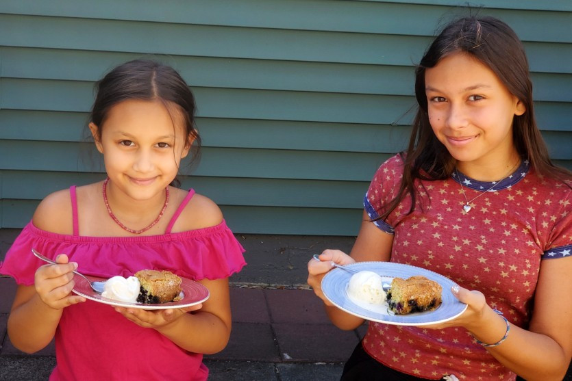Good friends visited with their lovely daughters, Roxy and Ruby Wu. The girls offered to sample the cake, along with some homemade vanilla ice cream. Roxy and Ruby approved.