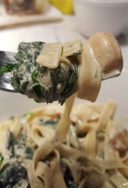 Fettucine with Creamy Sherry, Shallot, Scallop & Spinach Sauce