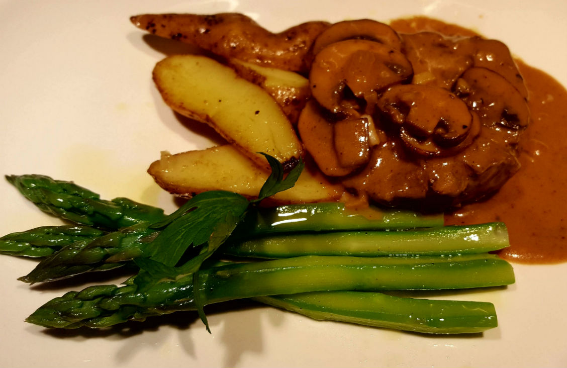 I recently made Steak Diane and paired it with twice-cooked fingerlings and truffle-scented peeled blanched asparagus. If I were to make it at home I would have plated it on top of potato puree with a side of wilted spinach. That just feels more steak house delicious. Either way, it was a beautiful dinner and we had another chef in the house that night who loved, loved, loved it (especially the pretty peeled asparagus). God is in the details. So treat yourself this weekend to a fancy Continental dinner at home! And open a great bottle of Margaux as well. Now that I’ve written, this, I don’t mind if I do.