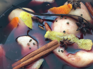 For the Poached Pears4 Bosc pears: peeled, cut in half and cored 2 cups port wine 1/2 cup sugar 1/2 cup water Peel of 1/2 orange Peel of 1/2 lemon 1 vanilla bean 2 cinnamon sticks 4 star anise 4 cardamom pods Juice of 1/2 lemon Put all the ingredients for the poaching liquid into a two-quart saucepan. Add the pear halves. Bring to a boil. Lower the heat and simmer until the pears are just cooked through. You should be able to pierce them with the tip of a knife. The pears should hold their shape and not be mushy. Cool the pears in the poaching liquid overnight in the refrigerator.