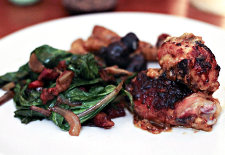 Around the same time that Jake impressed me with his mom's chicken parts in mustard sauce or, as we like to call it, "Salad Dressing Chicken." Quick, super easy and inexpensive, this dish was a classic in Jake's family -- and now it's one in our kitchen. Because it's a simple recipe that packs a major punch, his mom would make it for dinner parties as often as she would for busy week nights. And though it's quite a bit thicker and stronger, this mustard sauce comes very close to the Levin/Engel signature dressing. Jake will probably never to agree to publish his family's secret weapon, but in the meantime -- this chicken is awesome! Baked Mustard ChickenServes 4 1 whole chicken in 8 pieces