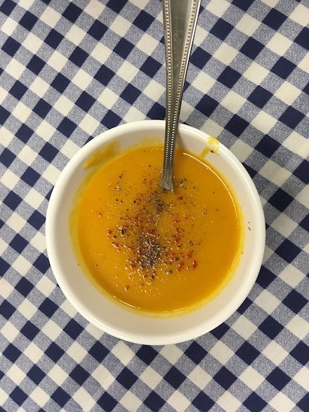 Need more creative ideas for cooking with squash this winter? Look no further than this curried winter squash soup. The sweetness of the apples and squash are complemented by the savory onions and spices. Once the squash is roasted the soup comes together quickly. We used butternut squash and topped it with cayenne pepper and fresh ground black pepper for an extra bite. It’s light yet filling and will warm you up on a cold winter day. Curried Winter Squash SoupServes 4 2 small pumpkins or 1 butternut squash 1 large onion, diced 2 apples, diced 1 quart of chicken stock 1 teaspoon or more of curry powder Salt Pepper 1. Cut the squash into sections, remove filling and seeds and roast at 375 degrees until tender, about 40-50 minutes. Roast seeds separately for garnish if desired. 2. Let the roasted squash pieces cool. 3. Sauté onions and curry powder until they are soft and fragrant. 4. Add apples and continue to sauté for another few minutes. 5. Peel the pumpkin and add its flesh to the soup pot. 6. Then add stock to the soup pot. 7. Bring the mixture to a boil, and then simmer for another five minutes. 8. Use a blender to puree the mixture. 9. Add salt and pepper to taste.