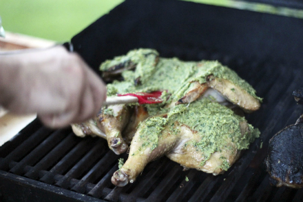 This week's recipe is from Berkshire-based duo The Butcher & The Baker. The Butcher is Jake, a nose-to-tail butcher/artist, who loves to cook and grew up in the woody hills of Western Massachusetts where his passion for local, fresh food was first instilled in him. The Baker is Silka, a designer/crafter who loves to bake and grew up in rural Western New York where her parents are candlestick makers. Together they spend most of their time talking about, shopping for, making, and eating food. By sourcing locally and sustainably, and spending time with the producers of their food, they’ve learned that every meal tells a story. We'll scream it, we'll shout it, we'll yell it from the rooftops: WE LOVE ALLIUMS. But to pick a favorite one, well that's something we're entirely less sure of. Ramps are wild, elusive and inspiring, the onion is the backbone of many-a kitchen, leeks are the class act, and garlic is the most pleasantly utilitarian. Yes, it's difficult to pick a leader of the pack... but for this post we'll go with garlic. We're used to thinking of garlic as small, papery-white covered bulbs with a hard, pungent flavor. But garlic is actually edible through four distinct phases of its life cycle, each transition much in line with our own seasons. In spring we have spring (or green) garlic -- slender, pale green reeds with small, white bulbs that very much resemble scallions. And now, in the summer, we have scapes! Long, elegant, saturated stalks stretching upward toward wispy, curled tails just screaming to be taken home and into the kitchen. These short-lived pleasures are at their best grilled or sauteed to crispy perfection. But we like to extend our enjoyment as long as possible with this simple pesto recipe. With a quick cook and a speedy spin of the food processor, you'll have a delicious dipping sauce, pasta topping, aioli addition or rub for butterflied grilled chicken.