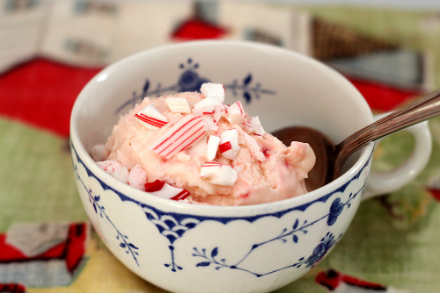 Peppermint Stick Ice Cream(adapted from The Joy Of Cooking) Ingredients: 3/4 cup sugar 1/8 teaspoon salt 1 vanilla bean, split lengthwise in half 3 cups heavy cream 1 cup whole milk 10-12 candy canes, crushed Special Equipment: Ice Cream Maker Directions: 1. Combine 1 cup of the heavy cream, the sugar, and the salt into a medium saucepan. Scrape the seeds of the vanilla bean into the cream mixture, then drop the bean shell in as well. 2. Bring to a simmer over medium-low heat, stirring often to dissolve the sugar. 3. Pour the cream mixture into a bowl and stir in the remaining 2 cups of heavy cream and milk. Refrigerate until cold, overnight if possible. 4. Remove the vanilla bean and seeds and discard. Pour the mixture into your chilled ice cream maker, then let'er rip. While it's working its magic, crush your candy canes into small chunks. We like to put them into a plastic baggie wrapped up in a dishtowel. Then we go over it a couple times with a rolling pin. 5. Once your ice cream mixture is almost at the desired texture, throw the crushed candy into the mixture, letting the machine incorporate the chunks. 6. Serve immediately or put in the freezer for another hour or so. Philadelphia-style ice cream – well, any homemade ice cream, really – is best when served within a few hours.