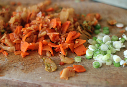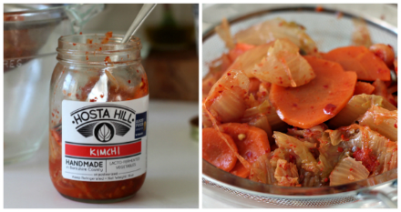 Hosta Hill kimchi has always been in our fridge, long before this continental cooking kick. Our Sunday morning breakfasts often consist of a fried egg, some left over rice or noodles and a big, hearty scoop of kimchi right on top. But recently we’ve really been plowing through it; in kimchi and pork stew, alongside miso glazed haddock, finishing off tatosi stir fry, you get the idea. These kimchi pancakes are one of our favorite new discoveries. Serve them as a side with marinated steak and sauteed greens, or pile them high and give them the spotlight. Kimchi PancakesMakes 8 pancakes 2 cups cabbage kimchi (or one full jar of Hosta Hill) 1/2 cups all-purpose flour 1/2 cups rice flour 1 teaspoon kosher salt 4 scallions, finely chopped Vegetable oil (we used safflower)