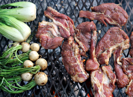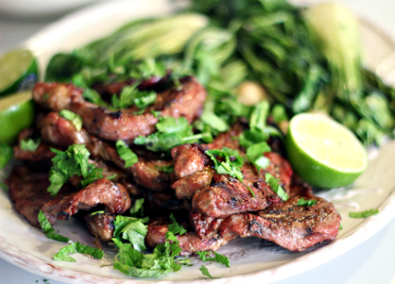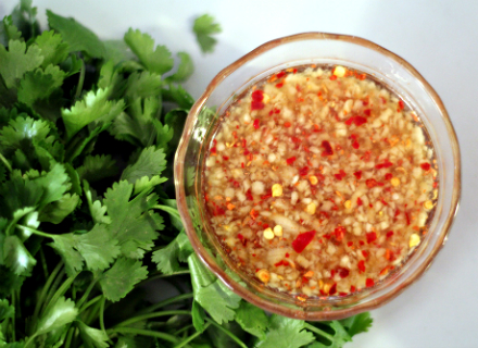 For the dipping sauce:2 tbsp minced garlic 1 tbsp red chili pepper flakes 3 tbsp fish sauce 3 tbsp lime juice 2 tsp sugar 4 tbsp cilantro, finely chopped Mix all together in bowl and serve along side grilled meat. Serve meat and sauce with bibb lettuce leaves or bok choy leaves and rice.