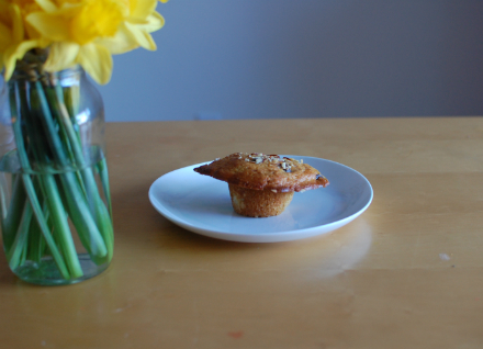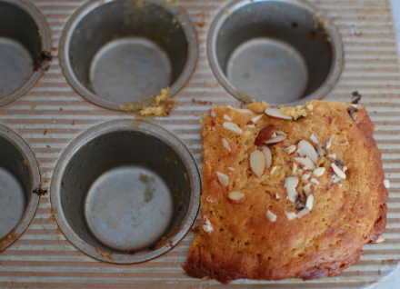 Pear Chocolate Almond MuffinsMakes 12 muffins 1 cup milk 1 cup yogurt 2¼ cups all-purpose flour 1 cup spelt flour ½ teaspoon baking soda 4 teaspoons baking powder ½ teaspoon kosher salt 2 large eggs 1 egg yolk 1 cup sugar 1¼ sticks (1/2 cup plus 2 tablespoons) unsalted butter, melted 1 teaspoon vanilla extract ½ teaspoon almond extract 2 small Bosc pears, peeled, cored and cut into ½-inch cubes ¾ cup bittersweet chocolate chips ¾ cup sliced almonds 1. Measure the milk and yogurt, and leave them out on the counter to warm a bit while you prepare the other ingredients. Preheat the oven to 350°F with a rack in the center and a baking sheet in the bottom of the oven to catch any drips. Grease a 12-cup muffin tin, taking care to grease the space between the cups as well. 2. In a large bowl, sift together the flours, baking soda, baking powder, and salt. Set aside. In a separate bowl, whisk the eggs and egg yolk. Slowly whisk the sugar into the eggs. Then whisk in the melted butter, milk, yogurt, vanilla, and almond extract. Pour the egg mixture into the flour mixture, and gently fold with a wooden spoon until most of the dry is incorporated into the wet. Add the pear and chocolate, and again, lightly fold the ingredients in, taking care not to over mix or crush the pear. 3. Using a large spoon or ice cream scoop, fill the muffin cups to the brim. (Note: if your muffin tin has cups that are on the small side, you may have a bit of extra batter. Don’t fill overfill the muffin cups, as these really spread.) Sprinkle each muffin with almonds, and bake for 45 to 50 minutes, until the tops are golden and a toothpick, when inserted in the center muffin, comes out batter-free. Let the muffins cool in the pan for 15 minutes, then turn the muffin tin upside down to release them from the pan. Let them continue to cool upside down until you’re ready to eat them.