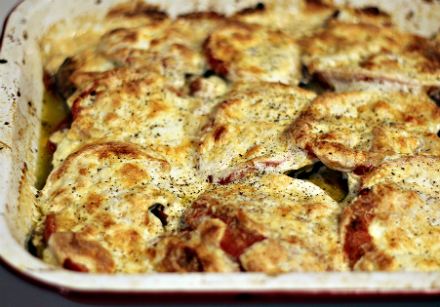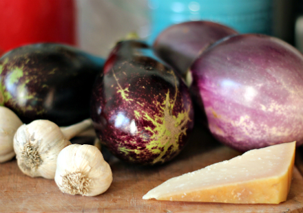 We say, embrace the transition, the back and forth, the thin-line walking. Here's how to do it: rustic eggplant parmesan. This particular take on the classic Italian-American dish involves almost no prep and maybe even less time in the kitchen, but it still manages to shine with layered flavors of slow roasted tomatoes, earthy eggplant, and creamy melted cheese! It is the best of both our worlds — hot sticky summer, and cool crisp autumn. Rustic Eggplant Parmesan 2 medium eggplant (about 2 lbs.) sliced into 1/4-inch-thick rounds ¾ teaspoon kosher salt, more to taste Freshly ground black pepper to taste About ¾ cup extra virgin olive oil 1 head of garlic (6 large cloves) minced or pressed 6 medium tomatoes sliced into 1/4-inch-thick rounds ½ cup finely grated Parmesan 1 lb. fresh mozzarella, sliced into 1/4-inch-thick rounds Handful of basil, chopped if you prefer