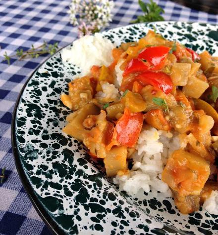 My initial introduction to the percussive sounding French vegetable dish ratatouille was the Disney movie. Remy, the French rat chef extraordinaire with his kaleidoscope of spiraled colorful summer vegetables, impressed the most haughty Parisian restaurant clientele. I fell in love with the real ratatouille in France, and my affair with the dish far exceeded any of my previous conceptions of romance abroad. It was infinitely more satisfying. Ratatouille has long been entrenched in Provençal summer cuisine and it's the French equivalent of corn on the cob – iconic, rustic gastronomy. Simply, ratatouille is a stew of eggplant, zucchini, peppers and tomatoes. Using herbs, the vegetables are renewed and redefined. They cease to exist independently and transform into one melded ragout that nonchalantly calls to your tastebuds, “c’est moi, I am summer.” Chefs around the world have developed ratatouille to meld to the desires of the palate of their region. In fact, unlike most French cuisine, ratatouille does not have a set recipe or precise technique. Ratouiller means to stir up, but some iterations, like the iconic aforementioned Disney kaleidoscope, don’t even necessitate that. The Sylvia Center’s version is cooked in a big rondeau accompanied by a pot of rice. It is rich with thyme, oregano and basil while featuring all the ingredients we find ourselves swimming with this time of year: eggplant, peppers, tomatoes. Serve over rice or with a crunchy piece of baguette! Rustic Summer RatatouilleServes 4 1 onion, diced 2 garlic cloves, minced 3 tablespoons olive oil 1 medium eggplant, cut into 1/2-inch cubes (about 3 cups) 1 zucchini, cut into 1/2-inch cubes 1 red bell pepper, diced 3 ripe tomatoes, diced 1 teaspoon fresh thyme leaves 1 teaspoon fresh oregano, minced 3/4 teaspoon salt 1/2 cup shredded fresh basil leaves 1. In a colander, salt the eggplant and place over a bowl or in the sink. This will help the eggplant release some water. Let sit for about 10 minutes. 2. Heat a large sauce pan over medium heat. Once the pan is hot, add olive oil. When it shimmers, add the onion and saute until translucent, about 2 minutes. Add garlic and continue to saute until fragrant, another 2 minutes. 3. Add eggplant and saute until the eggplant begins to soften, about 8 minutes. Add peppers and zucchini and continue cooking until the vegetables are bright and soft, about 10 minutes. Add tomatoes, thyme, oregano and salt and let the vegetable mixture simmer until sauce thickens, about 8 minutes. 4. Serve immediately over rice. This dish is also great the next day.