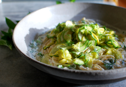 Twice a month, Berkshire native Alana Chernila, mother of two, and author of the cookbook, The Homemade Pantry: 101 Foods You Can Stop Buying & Start Making (Clarkson Potter), contributes a thoughtful and heartfelt essay/recipe created exclusively for Rural Intelligence readers. Her first cookbook has achieved top-seller status, and Chernila has a new one in the works, tentatively titled “Meals from the Homemade Pantry," due out in 2015. This week, she shows us a delicious way to use the bounty of squash turning up in your garden, it seems, daily. When I was little, my grandparents ran a vegetarian bed and breakfast on Rt. 23 heading out towards Monterey, Massachusetts. My grandfather had a huge garden behind the kitchen that existed solely to fill frittatas for summer breakfasts served to tourists and Tanglewood musicians. Shredded zucchini. Asparagus trimmed on the diagonal. Dill and basil. He'd layer it all four or five inches deep before pouring the egg overtop and baking it in a big rectangular pan. Those frittatas were layered like a green diagram of the crust of the Earth. And between fritattas and the daily loaves of whole-wheat zucchini bread from my grandmother's oven, I don't think there was ever a question of what to do with all those hundreds (thousands? I'll never know) of zucchini and summer squash that grew from each blossom in his garden. Right now, as the summer squash go into turbo mode, the zucchini questions come with a certain panic: What do you do with all that summer squash and zucchini? And yes, there are frittatas and loaves of zucchini bread. But beyond that, it depends on the day. Sometimes, I marinate thick squash and zucchini slices slices in olive oil, lemon, tamari and herbs for a few hours, and then I grill them before tossing them with mint and parmesan, or mixing them with leftover grains needing rebirth from the refrigerator. If it’s not a grill kind of night, I'll chop them into half moons and fry them with butter and rosemary. And when there’s no answer to dinner better than a big bowl of pasta on the back porch, I pick every herb in the garden and slice my zucchini thin with a mandoline. I make a sauce of ricotta loosened up with the starchy water from the pasta pot, and I pile up the warm zucchini over the creamy pasta. That’s been the treatment of the moment, and for now, that’s my go-to answer. It’s quick, it works, and it uses what needs to be used, thereby filling all the requirements of perfect summer dinner food.