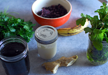 We both emerged from the bedroom in the last few days, me breathing almost normally again, she pushing her way through all the cotton batting on the floor to finally take a proper walk. And after all that, resistant as I was to the wave of New Year’s eating trends, all I wanted was to put everything good and fresh and real into my blender and drink it. I gave in again and again, and this week, I’ve been making one of the best smoothies I’ve ever had. So, just this once, I’ll break my own rule and I’ll write about a smoothie. If you too, crave something good and fresh and real, it'll be just right. I prefer my smoothies to be thin and creamy, but if your tastes go towards a thicker, icier drink, replace the water with ice. The Spicy BlueberryServes 2 1½ cups frozen blueberries 1 ripe banana ½ cup plain, whole milk yogurt ¼ cup loosely packed mint leaves ½ cup loosely packed flat-leaf parsley 2 teaspoons grated fresh ginger 1 tablespoon maple syrup Hefty pinch of cayenne 1 cup water Put all the ingredients in a blender and blend until entirely smooth. Drink immediately.