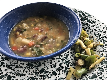 Ajiaco is a flavorful potato and corn soup that originates from Colombia, where it is traditionally made with chicken and a variety of potatoes. The starch from the potatoes add a naturally light creaminess reminiscent of whipped mashed potatoes — decadent but not over the top. It is the perfect one-pot meal for the autumn harvest, making delicious use of the end-of-season sweet corn, peppers, potatoes, carrots and fresh herbs. We made this soup on a chilly fall morning with a group of middle school students from Catskill. They devoured the entire pot. Vegetable Ajiaco Serves 8 2 tablespoons olive oil 1 medium onion, diced 3-4 garlic cloves, minced 2 large carrots, peeled and sliced 2 bell peppers, diced 8 cups vegetable broth, low sodium 4 bay leaves 8 potatoes, mixed variety such as red, Yukon and russet, diced (3-4 lbs) 1 teaspoon salt, to taste Freshly ground pepper, to taste 2 ears of fresh corn cut into 2-3 pieces, or kernels if preferred 3 green onions, sliced 2 tablespoons fresh cilantro, chopped ¼ cup parsley, chopped 2 tablespoons fresh lime juice Recommended garnishes:Vegan sour cream (about 3/4 cup) 2-3 avocados, peeled, halved and sliced (squeeze lime on them to prevent browning) 1. In a large soup pot, heat oil over medium heat. Add onion and sauté until translucent, about 3-4 minutes. Add garlic, peppers and carrots, sauté for 2-3 minutes. 2. Turn up the heat to high and add vegetable broth, ⅔ of the potatoes, bay leaves, salt and pepper. Once the soup starts to boil, put heat to medium-low to maintain a simmer, and cover pot partially with a lid. Cook for about 20-30 minutes, until the potatoes are starting to break down. 3. Using a fork, mash some potato pieces against the side of the pot. This helps thicken the soup and create a stew-like consistency. 4. Add remainder of potatoes, corn, green onion, parsley, and cilantro. Simmer for 15-20 minutes, until potatoes are tender and corn is cooked. Mash a few more potatoes, if preferred. 5. Check for seasoning and add more if needed. Remove bay leaves. While soup is finishing up, start preparing your selected garnishes. 6. Remove from heat and add lime juice. Serve hot with sour cream and avocado slices, if desired.