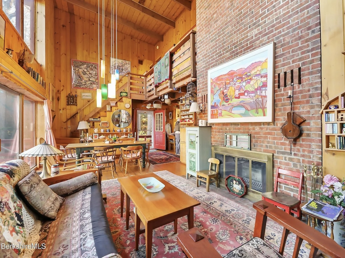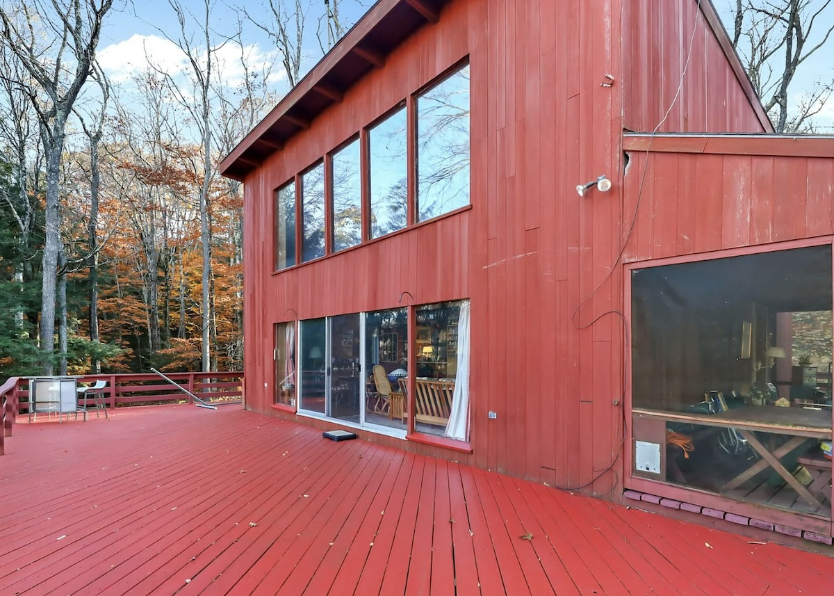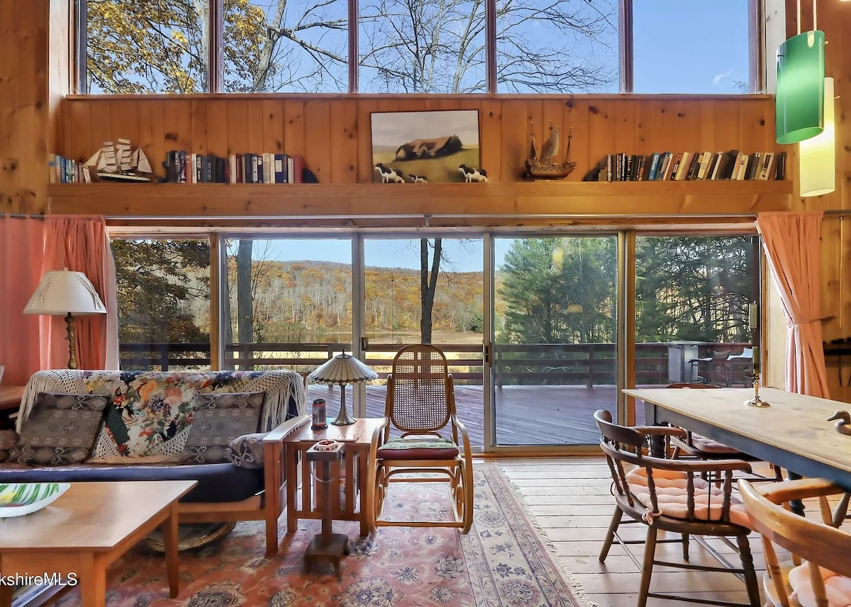 Up 1,700 feet on the serene slopes of October Mountain, the Gortamullen House offers a blend of history and nature. Constructed from California Redwood for Ambassador Walter Annenberg's family, this 2,208-square-foot residence features three bedrooms and three bathrooms. Its elevated position ensures cool summers and provides a tranquil retreat amidst the expansive 16,500-acre state forest—the largest in Massachusetts. Wildlife enthusiasts will appreciate the property's viewing deck, perfect for observing the abundant pond life and forest creatures. Despite its secluded setting, the home is conveniently located: just minutes from the Appalachian Trail, ten miles from Tanglewood, and five miles from Jacob's Pillow Dance Festival. Cultural aficionados will find themselves in the heart of America's longest summer arts festival, spanning from June to September. Additionally, a new five-bedroom septic design has been completed, offering future expansion possibilities.
