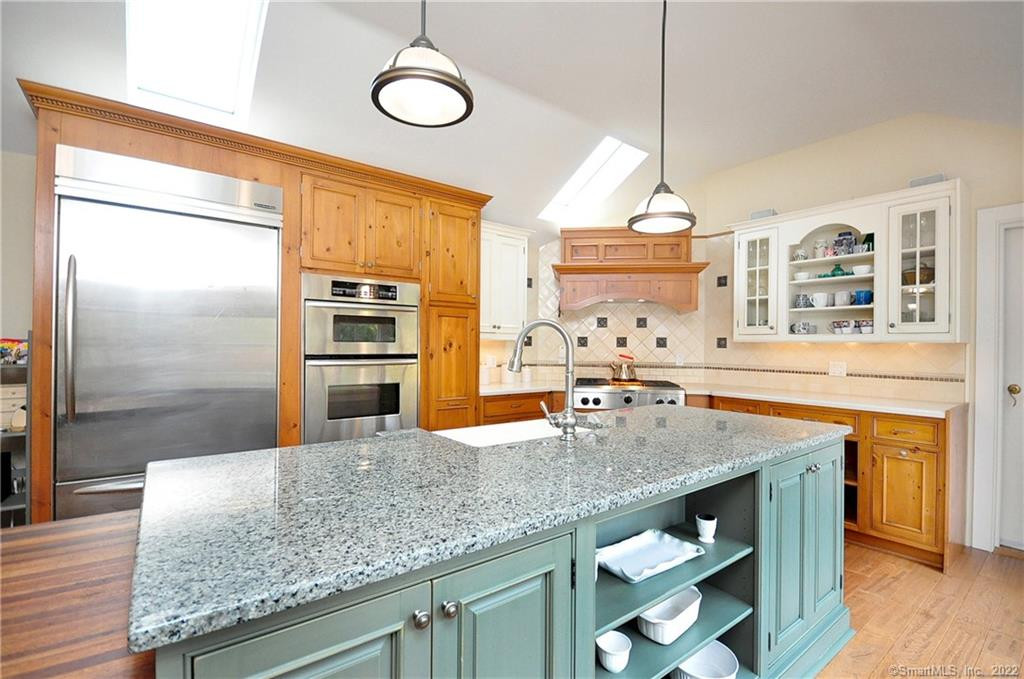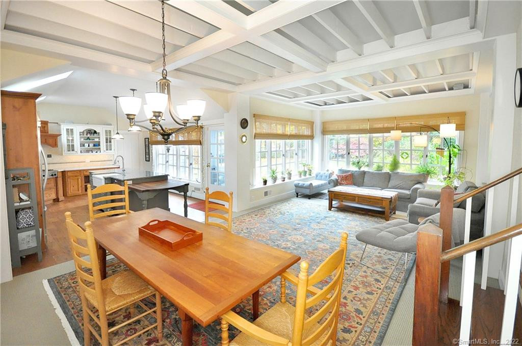 This 1870 carriage house in Litchfield offers three bedrooms and four bathrooms in 3,845 square feet. The two-story entrance leads to a spacious formal living room with fireplace. There's also a family room, dining area and gourmet kitchen. An in-law suite is just off the kitchen and above the two-car attached garage. Listed at $1,400,000 by E.J. Murphy Realty.