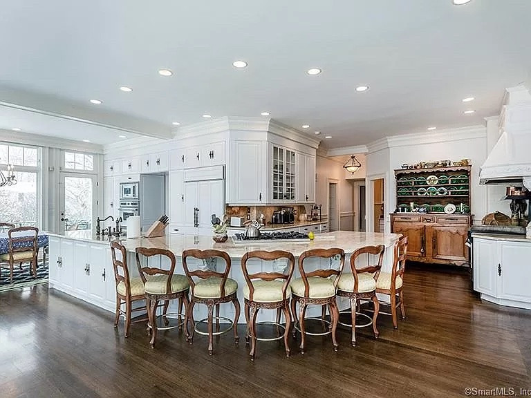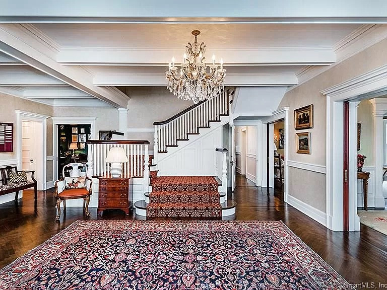 The Seymour Cunningham House in Litchfield, designed by noted architect Ehrick Rossiter, offers tradition with updates. The 7,000-square- foot home has seven bathrooms and eight bathrooms. The entrance hall features Tiffany glass and an impressive staircase. Exras include a music room, a butler's pantry, and a third floor with a Tiffany skylight. Outside there is a large deck, fountain and oversized pool/spa. Listed at $2,475,000 by Klemm Real Estate.