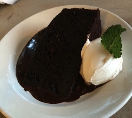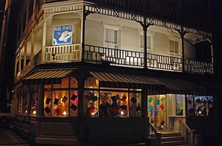 By Jamie Larson It’s worth catching dinner at the Blue Plate in Chatham New York, on the early side, while there’s still some light in the sky. You'll be surrounded by big beautiful windows, as evening light filters through the trees onto the butcher-paper tabletops. Then, by the time you’re drinking coffee and devouring a piece of rich chocolate bourbon espresso cake ($8) or smooth green tea cheesecake ($7), the night lights of Chatham will shine down around you.