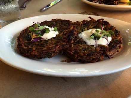 Blue Plate is owned by Chatham’s patron saint of small town culture, Judy Grunberg, and it exudes her personal mixture of good taste, generosity and laid-back nature. The vibe is unpretentious class. Since 2014, the kitchen has been run by Dominic Giuliano, a CIA grad who opened the Choza Taqueria kiosks in the city before moving to the Hudson Valley. Grunberg recently expanded her humble empire, opening Prepared, a novel takeout bistro on Main Street, which specializes in hot dishes made from what local farms have in season, with the offerings overseen by Chef Giuliano. They’ve coined the novel phrase “Farm to Takeout.” But back at the always-friendly Blue Plate, there’s a well-regarded wine list and signature cocktails that are complex and vibrant. The pineapple chili margarita ($11) isn’t that all-too-common oversweetened fruit punch but well restrained and balanced, highlighting the tangy notes in pineapple with a kick from the chili-lined rim. The bourbon ginger julep ($11) was also easy on the syrup and refreshing, with enough whiskey to make itself known.