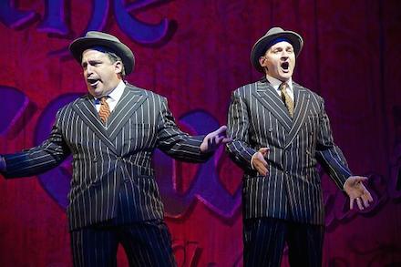 Written just before the TV era of sitcoms and variety shows, Kiss Me, Kate is an old-fashioned musical that was designed as broad entertainment. It has something for everyone — witty repartee, slapstick, torch songs, acrobatic dance numbers and, of course, a lush score by Cole Porter that is given its due with BSC’s 12-piece orchestra under the baton of Darren R. Cohen. Good casting is good karma, and Elizabeth Stanley (as the diva Lilli Vanessi who plays Katherine in Shrew) and Mara Davi (as Lois Lane, the young actress with stars in her eyes who plays Bianca in Shrew) are — to paraphrase Porter — delightful and de-lovely. They each have a showstopper in Act One: Davi’s version of “Tom, Dick or Harry" has a feminist feistiness and is brilliantly choreographed by Lorin Latarro who fully exploits the dancing talents and romantic charms of Calvin Cooper, KC Fredericks, and Tyler Hanes. When Stanley comes in front of the curtain to perform “I Hate Men" (and turns into a proto-feminist number), she captivates the audience with her powerful voice and impeccable comedic acting. The men that bedevil them are played with roguish charm by Paul Anthony Stewart and Tyler Hanes.
