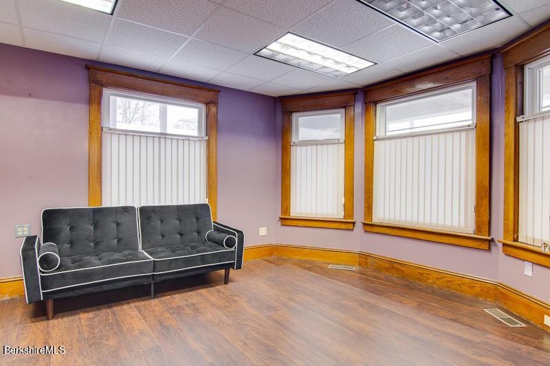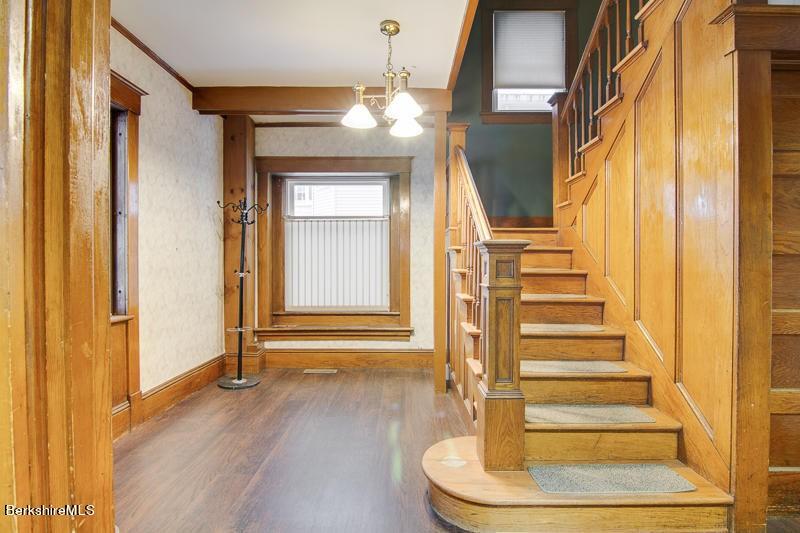This 1915 Colonial on Elm Street in Pittsfield is being rezoned residential. With 4,462 square feet, it has six bedrooms and one-and-a-half baths. It does not currently have a full kitchen, but the second floor has a kitchenette. The house has retained its beautiful hardwood floors and finishings. There are insulated windows as well as central air conditioning. Listed at $174,900 by Gelinas Real Estate.