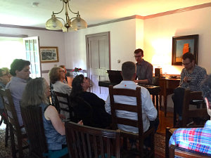 The season’s first musical theater writing team gave a taste of what the week was like at the reception on July 11. Charlie Sohne, bookwriter/lyricist, and Tim Rosser, composer, both recipients of a 2015 Jonathan Larson Grant, presented three songs from their work in progress, Run Away Home (one of which they had written that morning). The week away from the distractions of the city and in a house where all their needs were met did more than give them a place to work. “We are actually changing the entire way we’re telling the story," says Sohne. “That wouldn’t have happened without this week of intense, uninterrupted work." Evans began the retreat modestly, but has since honed her skills as fundraiser extraordinaire, enlisting financial commitments from a widening circle of donors. “I’ve learned if I tell my story passionately," she says, “and tell why it’s so important to support writers, people get it. People want to support the form and support writers.
