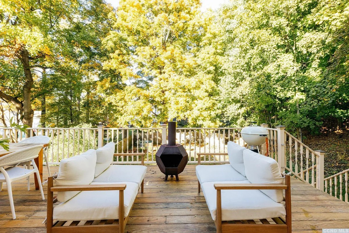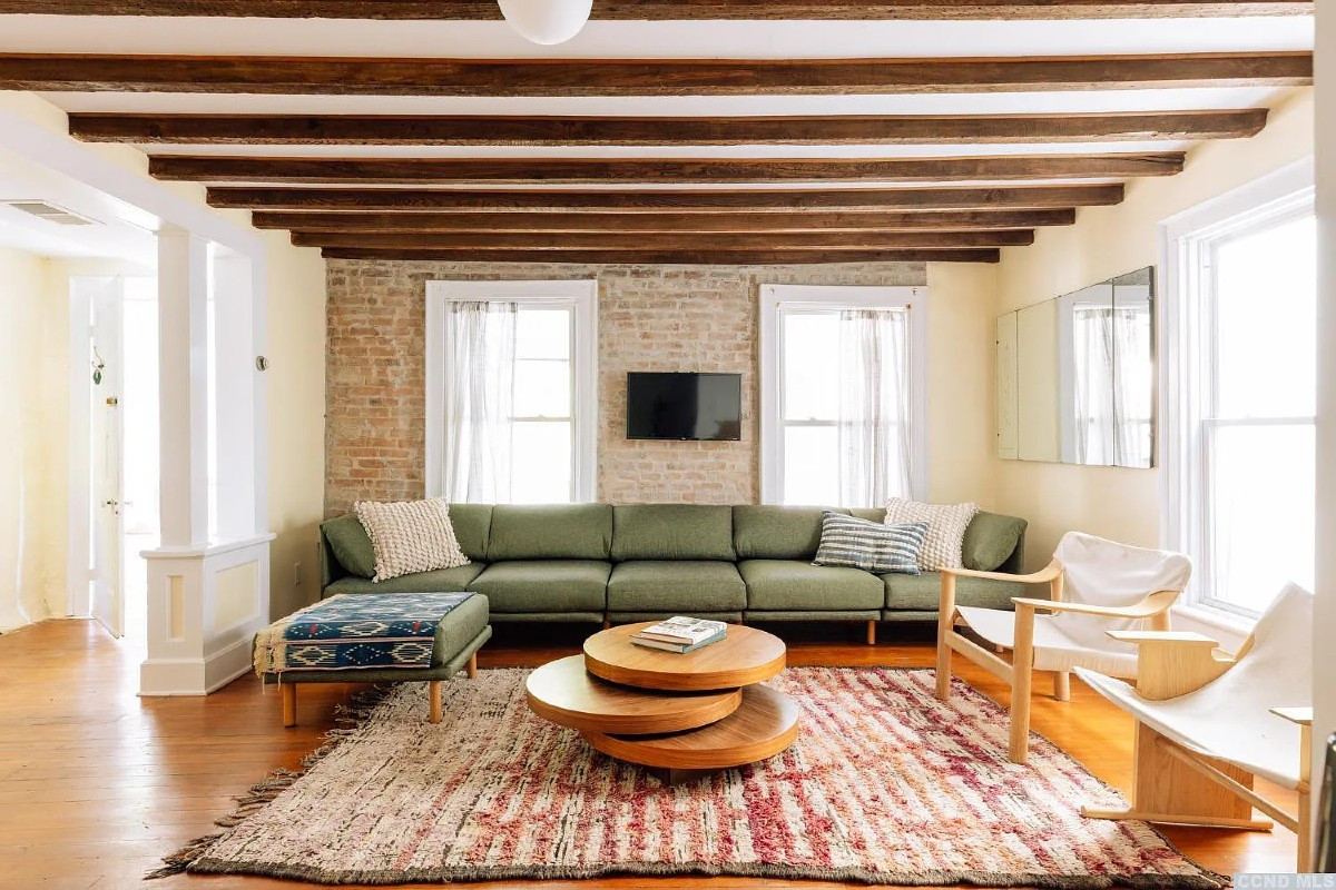 The River House is Rhinecliff, nestled between a wooded lot and two other historic homes (referred to as The Three Sisters) is said to be an original kit home model dating back to 1880. The fully updated house has four bedrooms and three bathrooms, a covered front porch, a "showstopping" kitchen, a family room, and additional rooms that can be used as an in-law suite. There are unobstructed views of the Hudson River. Listed at $995,000 by Four Seasons Sotheby's International Realty.