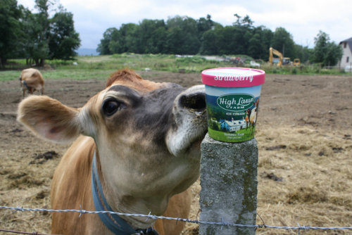 A High Lawn Jersey inspects her ice cream.