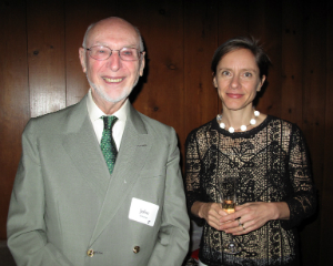Amy Krzanik reports from New Lebanon. To celebrate the opening of its newest exhibit, the video Rock My Religion by Dan Graham, Shaker Museum | Mount Lebanon hosted a full day of events on Saturday, September 13 that included screenings of the work, talks with Graham and tours of the grounds, and culminated in a reception and dinner in the Tannery. Board members, patrons and artists mixed and mingled over cocktails in the historic building, followed by dinner prepared by SoMa Catering using the best from Columbia and Berkshire County farms, including poultry from Letterbox Farm Collective in Hudson and Climbing Tree in New Lebanon, and produce from Colfax Farm in Canaan and Markristo Organic Farm in Hillsdale, among others. Dessert was a Shaker-inspired apple tart paired ingeniously with SoCo Creamery’s ginger ice cream. Another nod to the landmark’s past inhabitants came at the end of musician Rebekah Heller’s performance. The International Contemporary Ensemble bassoonist performed a solo piece she helped create, and finished with the much adored Shaker classic “Simple Gifts." Proceeds from the benefit dinner help fund the Museum’s preservation efforts and public programs. Above, Herbert Teitelbaum, Museum President David Stocks and Ruth J. Abram.