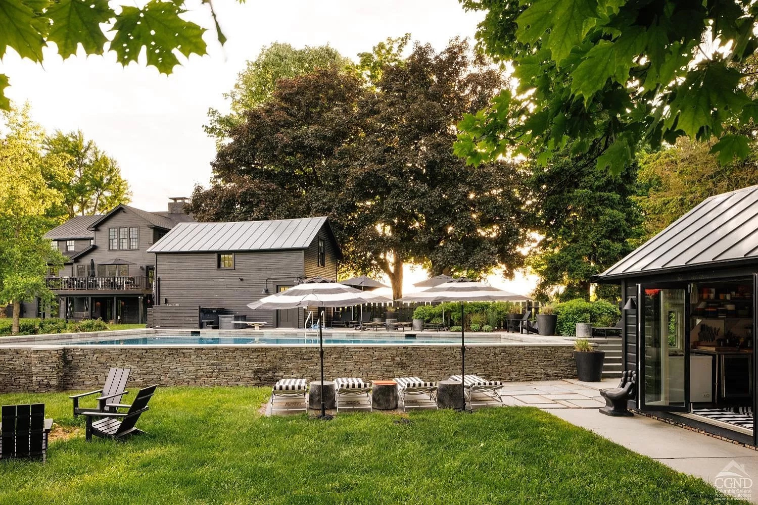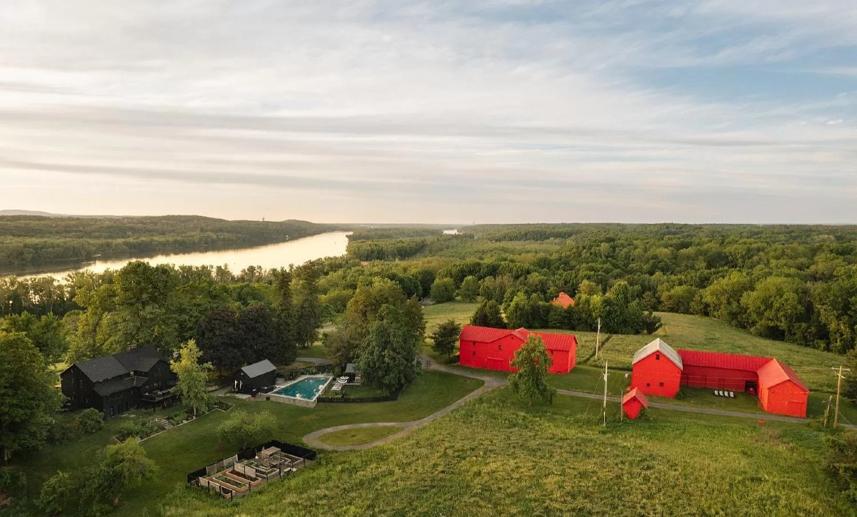 Rode Barns in Stuyvesant features three stables at the center of the property notched into rolling hillsides and wildflower meadows. The 1840 three-bedroom, three-bathroom farmhouse is perched on the banks of the Hudson River and has been renovated top to bottom. There's a saltwater pool, several outbuildings and an organic vegetable garden. Listed at $2,890,000 by Four Seasons Sotheby's International Realty.