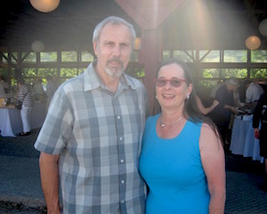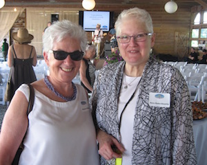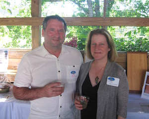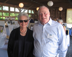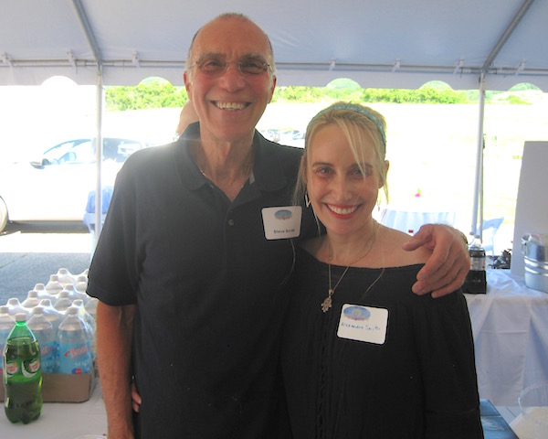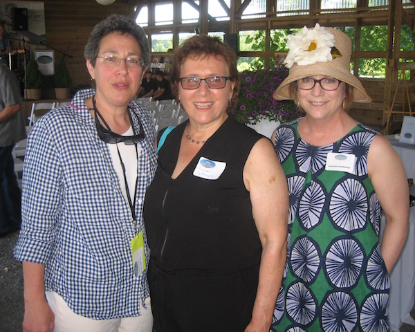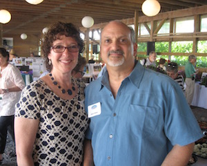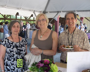 Rachel Louchen reports from Hillsdale. Stacks of books were replaced by fields as far as the eye could see on Saturday, June 18 for the seventh annual Party in the Park for The Roeliff Jansen Community Library. Held in the Harvest Barn at Roe Jan Park directly across the street from the library, the annual event outsold all previous years. The decorating committee made good use of the barn's exposed beams for stringing lights while hay bales held the large food spread donated by local restaurants. The silent auction included items such as lunch with former New York Times food writer and best-selling author Mark Bittman, house seats to Disney’s Aladdin on Broadway, and a catered dinner with wine pairings. A regular theme of the gala is recognizing dedicated patrons for their service, and this year, longtime philanthropists Pat and Jack Shakshober were honored for their over 40 years of support for multiple local organizations, including the library. The event funds the library all year and the significant turnout is unsurprising; the attendees at the event are actively and passionately involved in the library through their donations, volunteer work or just visiting regularly to take out books. [Above, Pat Placona, president of the library’s board of trustees and event chair Chris Atkins.]