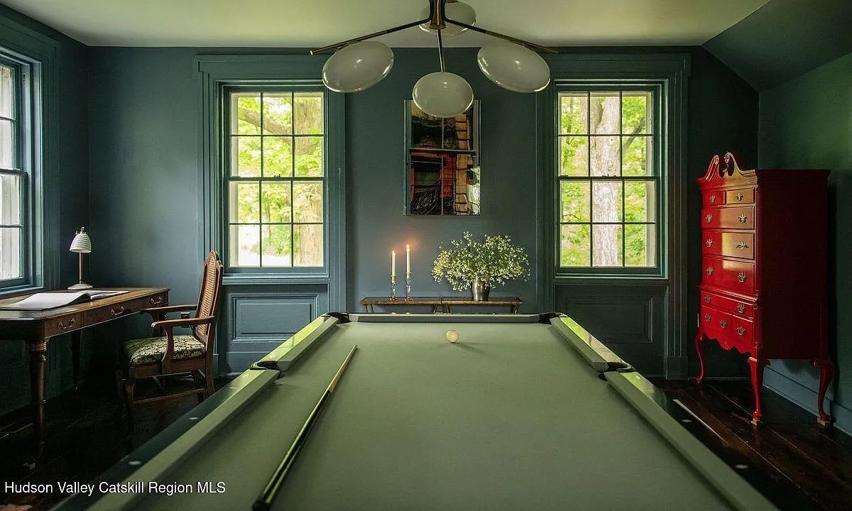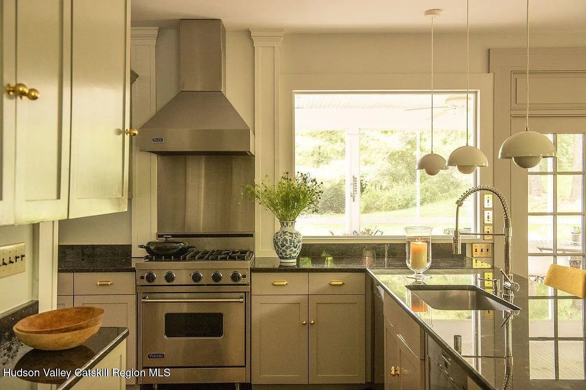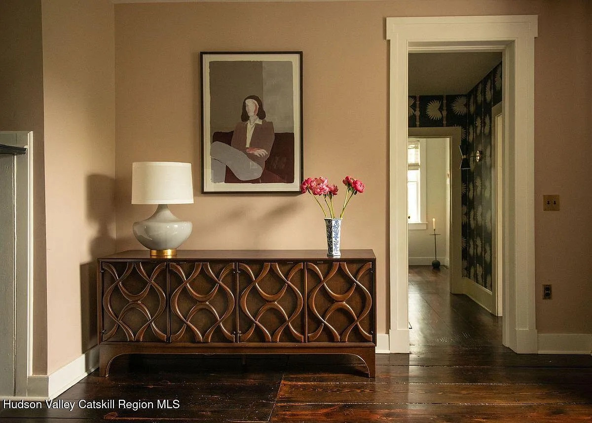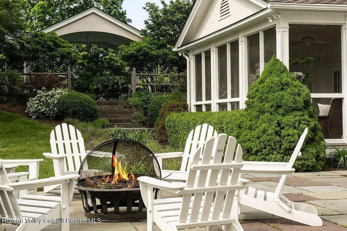 This is a Hudson Valley summer romance on 6.4 acres, on a quiet dead-end street with knockout views of the Catskills. 93 Old Mill Road in Ghent is a 3,240-square-foot 1820s farmhouse updated and expanded by Bill Stratton builders, with lilacs, hydrangeas, and peonies, old-growth trees, and low stone walls.