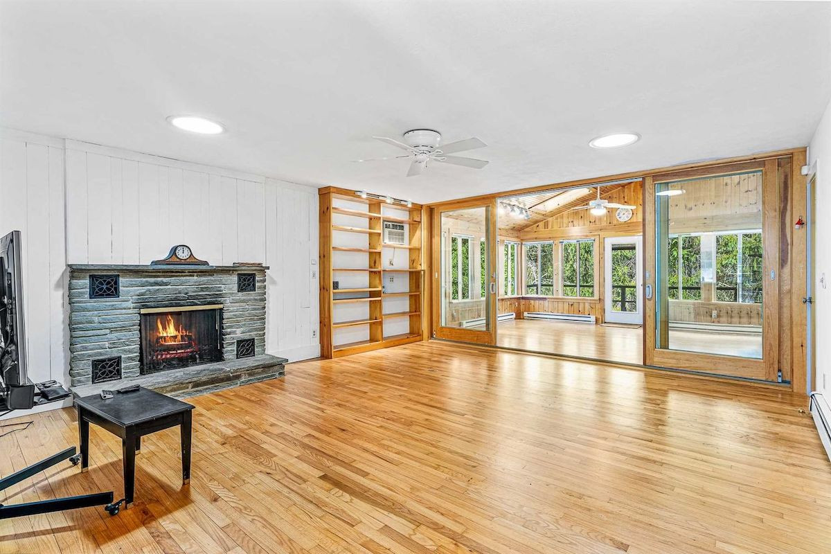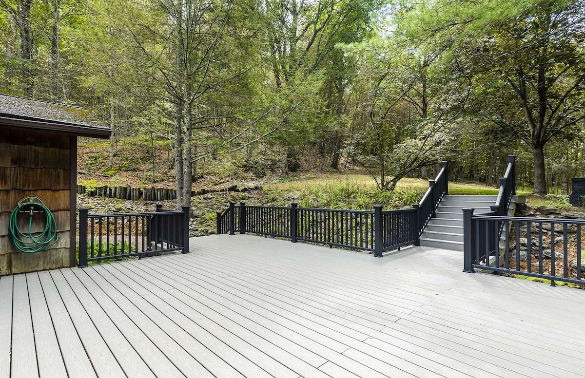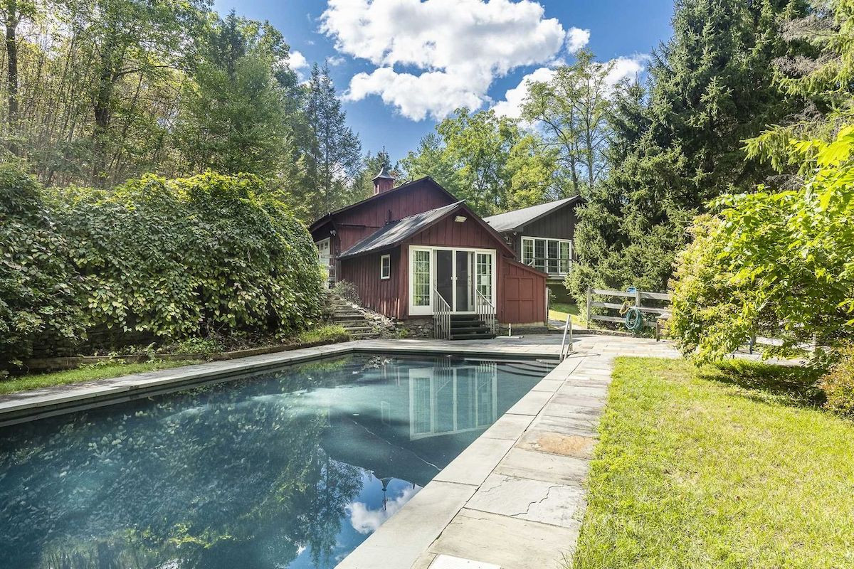 Sited on 13 acres in Clinton Corners, this single-level home offers four bedrooms and three bathrooms, a gourmet country kitchen with new granite countertops, a home office, and hardwood floors and knotty pine throughout. Outside there's a new wraparound deck and a pool with bluestone surround, plus a poolhouse. Atop the hill in the backyard is a wide-open pasture for gardens or animals. Listed at $749,000 by Compass.