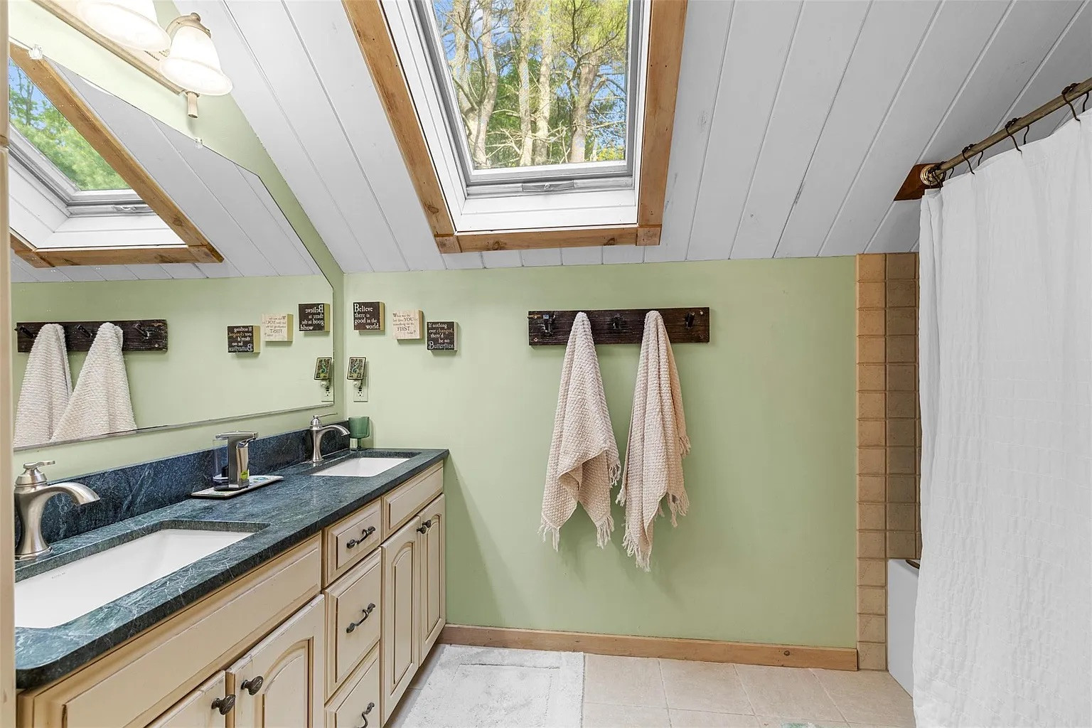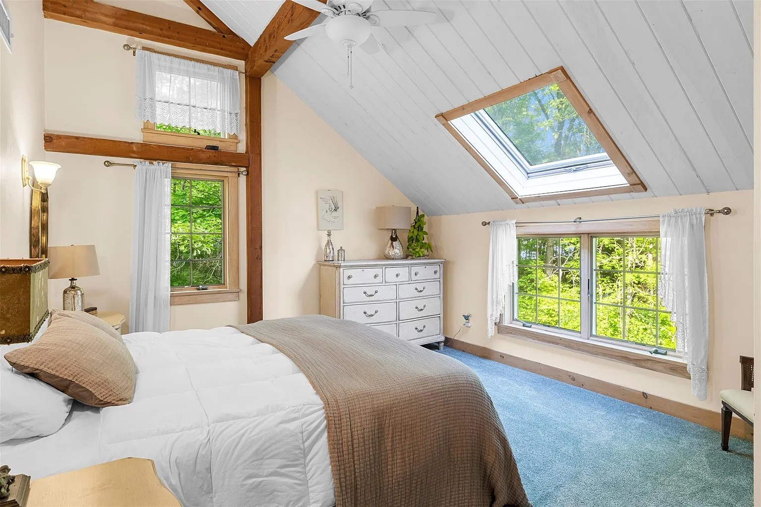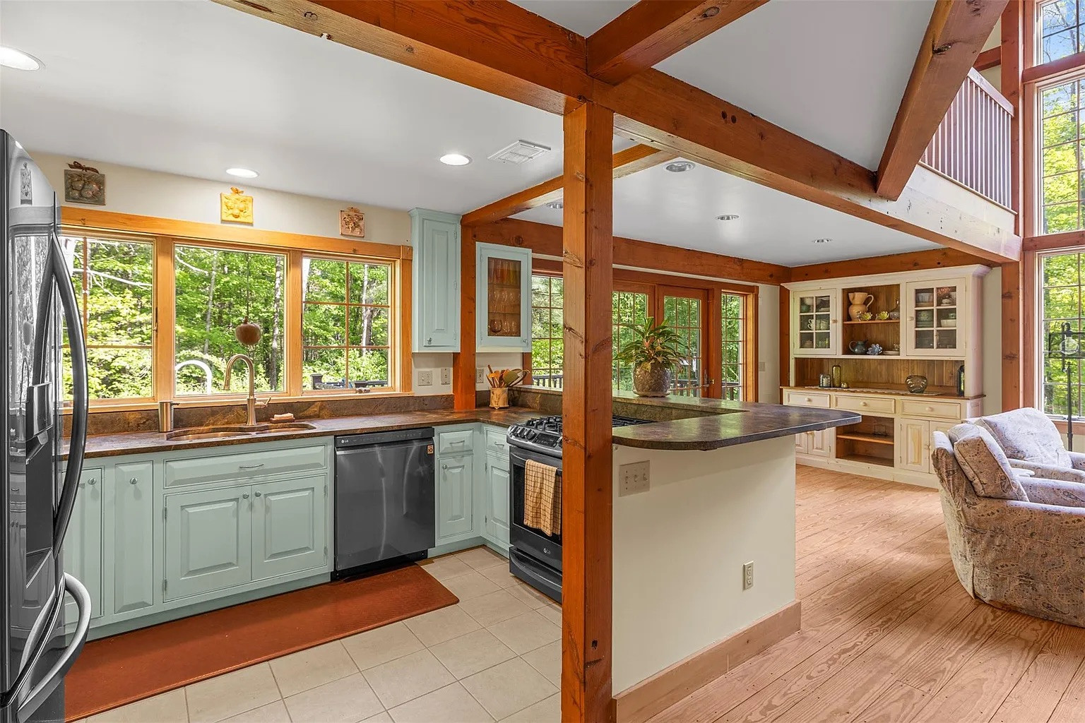 Built by Yankee Barn Homes, which makes custom sustainable houses of all architectural styles, 577 Fiddlers Bridge Road is an eco-friendly find in Staatsburgh. Built in 2003 on 4.5 acres, it's 2,572 square feet of rustic but refined charm, with vaulted ceilings, a wood-burning stone fireplace, and warm pine floors.