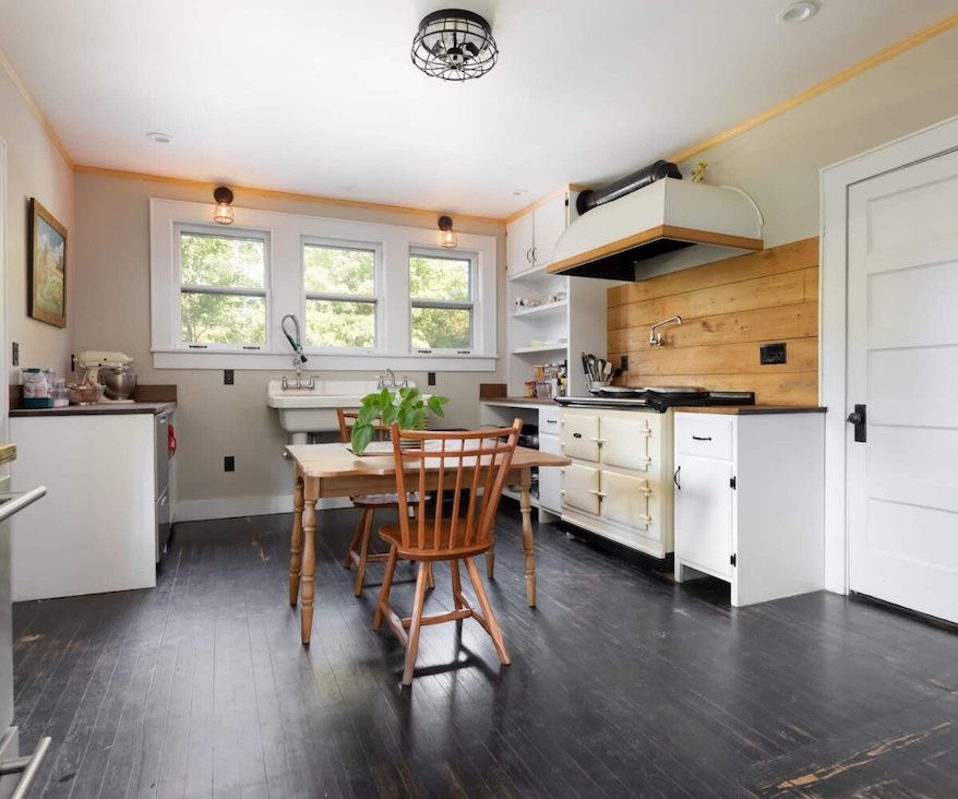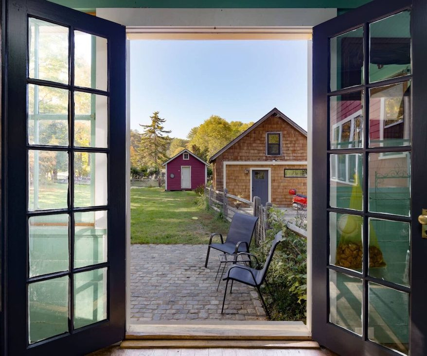This updated in-town Salisbury home offers three bedroom snad three bathrooms, sited on a spacious yard. The kitchen blends modern updates with old-time flavor. The graceful staircase leads to the bedrooms upstairs. The cobblesone dining patio transitions to the partially finsihed guest cottage, which could become guest space or a private studio. Listed at $895,000 by Elyse Harney Real Estate.