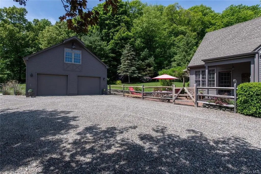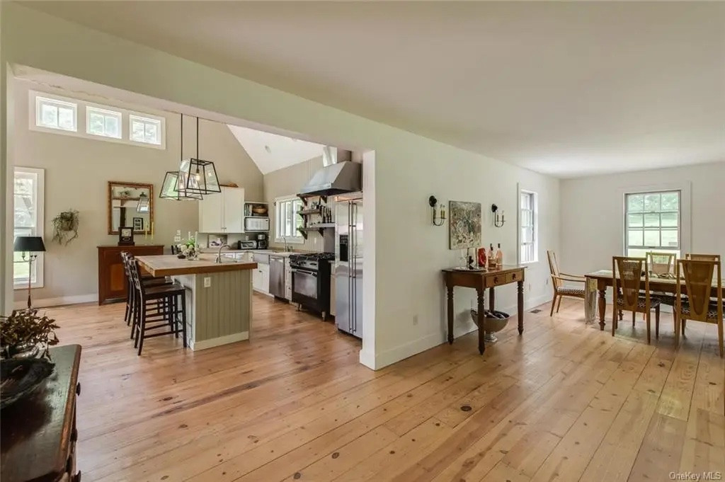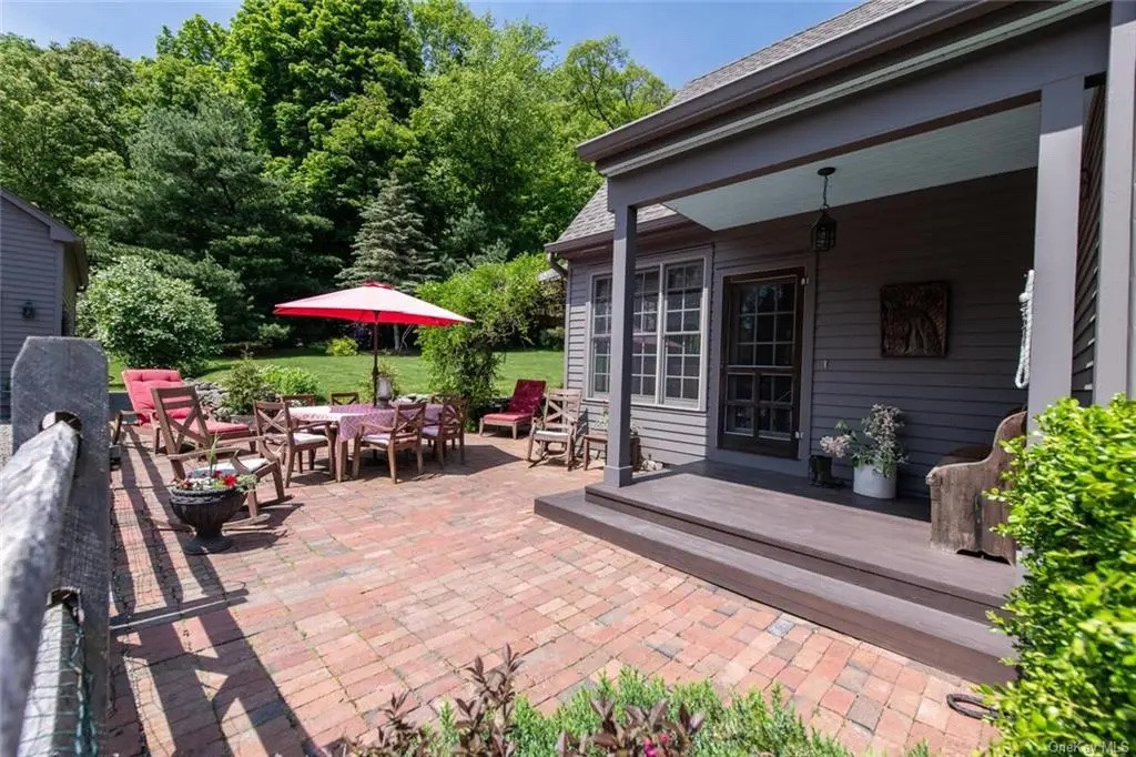 Built in 1993, this Saltbox sits on almost three acres surrounded by stone walls and backed by woods in Lagrangeville. It has four bedrooms and three bathroooms, and a high-end kitchen. The finished lower level with rec roon and office also provides extensive storage space. There's a loft over the two-car garage. Listed at $775,000 by Houlihan Lawrence.