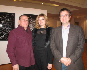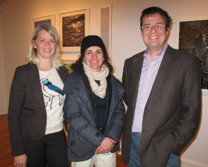 Amy Krzanik reports from Lakeville. The traveling photography exhibit, On Time and Place: Celebrating Scenic Hudson's First 50 Years, is currently at its final stop at the Hotchkiss School's Tremaine Gallery, after visiting six public spaces in the Hudson Valley last year, including Grand Central Terminal. The installation, which runs through March 6, celebrates Scenic Hudson, the movement credited with saving Storm King Mountain and launching the modern grass-roots environmental movement. The 34 works by 12 photographers pay tribute to the Hudson Valley area, its scars and its beauty. From birds in flight and panoramic views of the land, to dramatic, color-drenched close-ups of rotting vegetation and abandoned factories, the work is at once varied and cohesive. (Shown above: Roberto Luna with Tremaine Gallery co-directors Terri Moore and Greg Lock.)