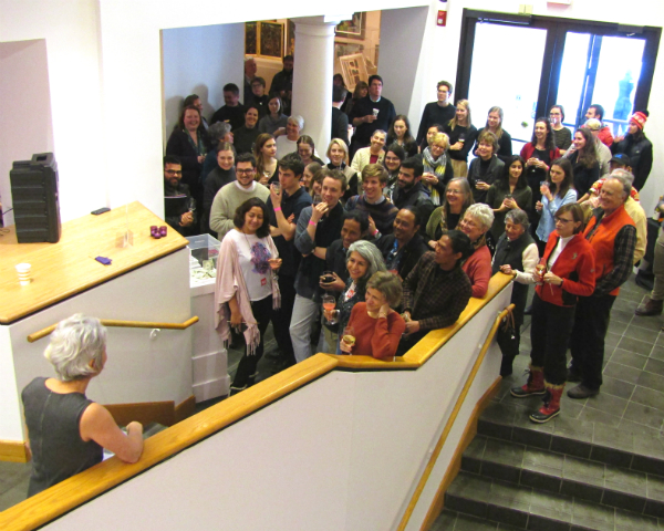 WCMA director Christina Olsen welcomes the crowd to the opening.