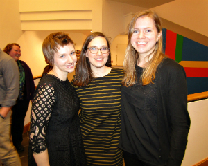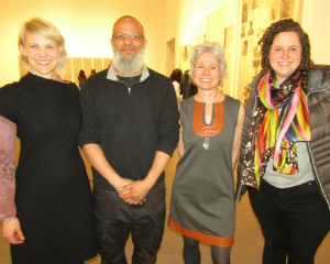 Ashley Drake and Amanda Bell; Lisa Dorin, WCMA's deputy director of curatorial affairs, with Meleko Mokgosi, Christina Olsen and MASS MoCA curator Denise Markonish.