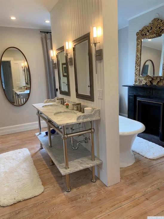 Recently renovated top to bottom, this Victorian in Hudson built in 1888 has three bedrooms and three bathrooms. The light-filled rooms have soaring ceiling heights, a large kitchen and dining area with soapstone counters and all-new appliances. Period details include the five fireplaces. There is a third-floor great room. The property also offers off-street parking and an outdoor dining terrace. Listed at $1,250,000 by House Hudson Valley Realty.