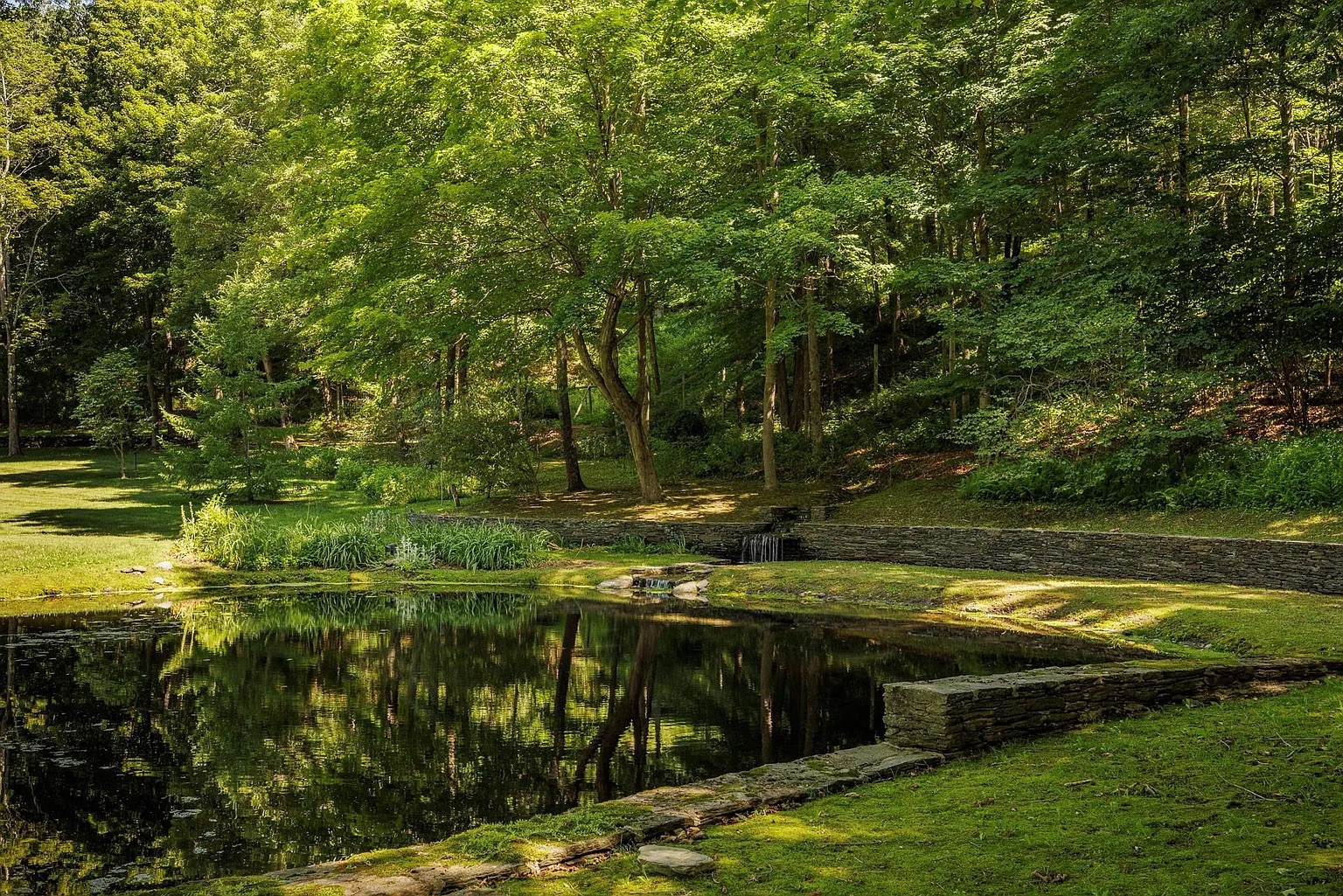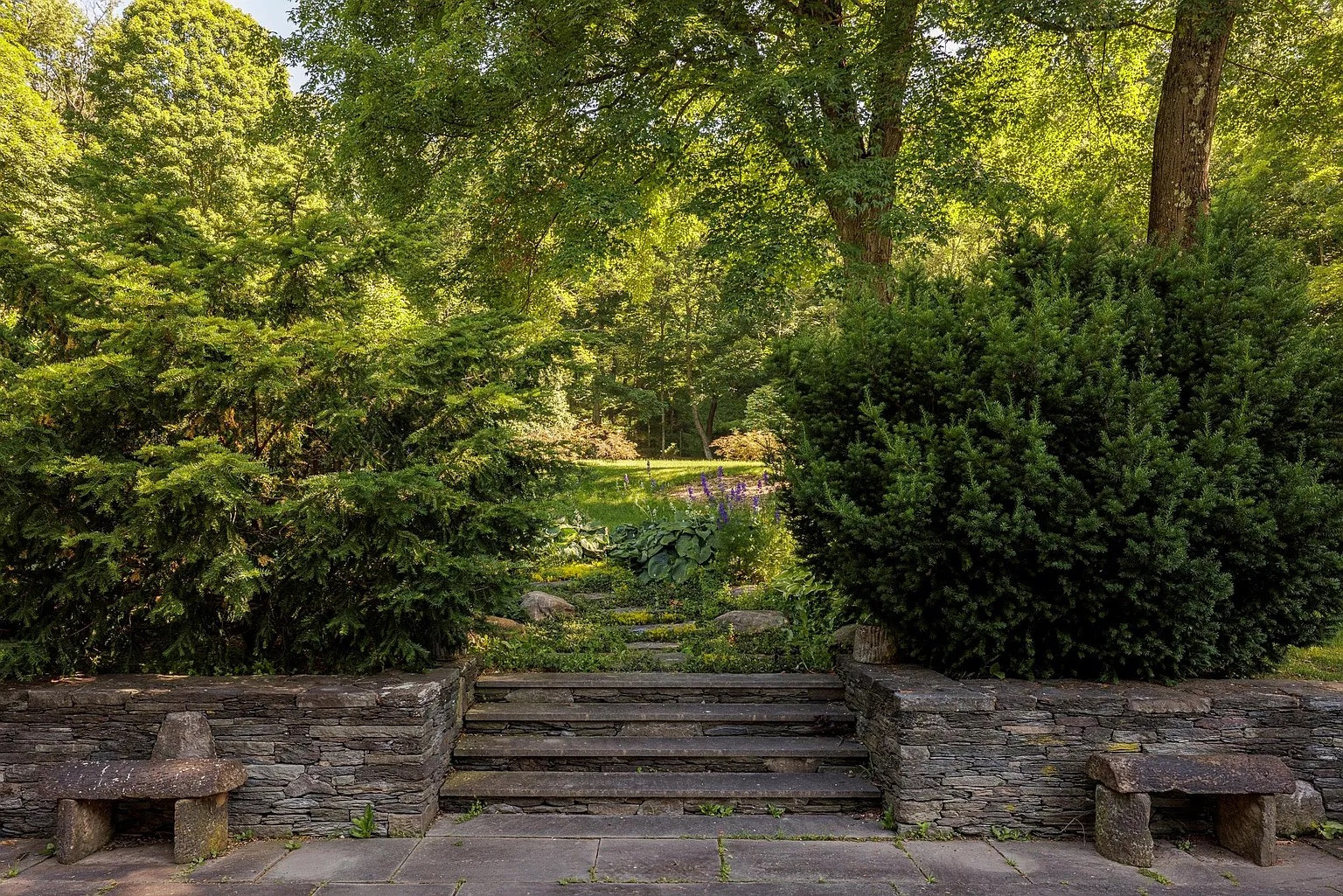 447 Butts Hollow Road may sound funny, but this is a serious gardener’s paradise in an extremely convenient location. Around four miles from the Wassaic Metro-North stop in Dover Plains, minutes from Millbrook, Amenia, and Sharon, CT, this is an adorable cottage on 12.5 acres full of curated gardens, stone paths, rare seasonal flowers, a pond, and landscaped fountains and waterfalls.