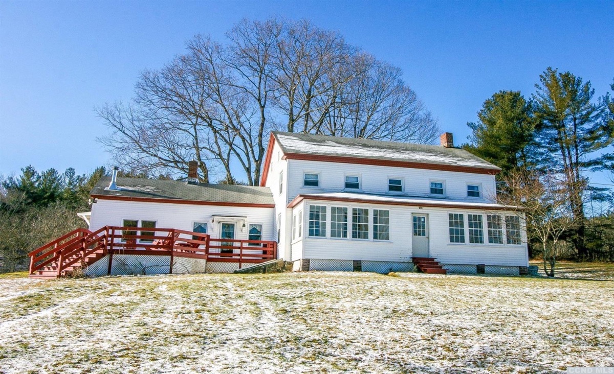 With 4 bedrooms and 2 baths, this antique farmhouse and antique barn in New Lebanon sits on 220 acres of rolling hills, forest and fields with two streams feeding a four-acre pond. This estate includes a large living room, formal dining room, large country kitchen, sun room, 2 enclosed porches, 2 mud rooms, and a large sunny deck. Much of the property is in the forestry program for a tax benefit and it is also adjacent to Hand Hollow Conservation Area. From the top field, there are views of the Berkshires. Listed at $600,000 by Beach & Bartolo.