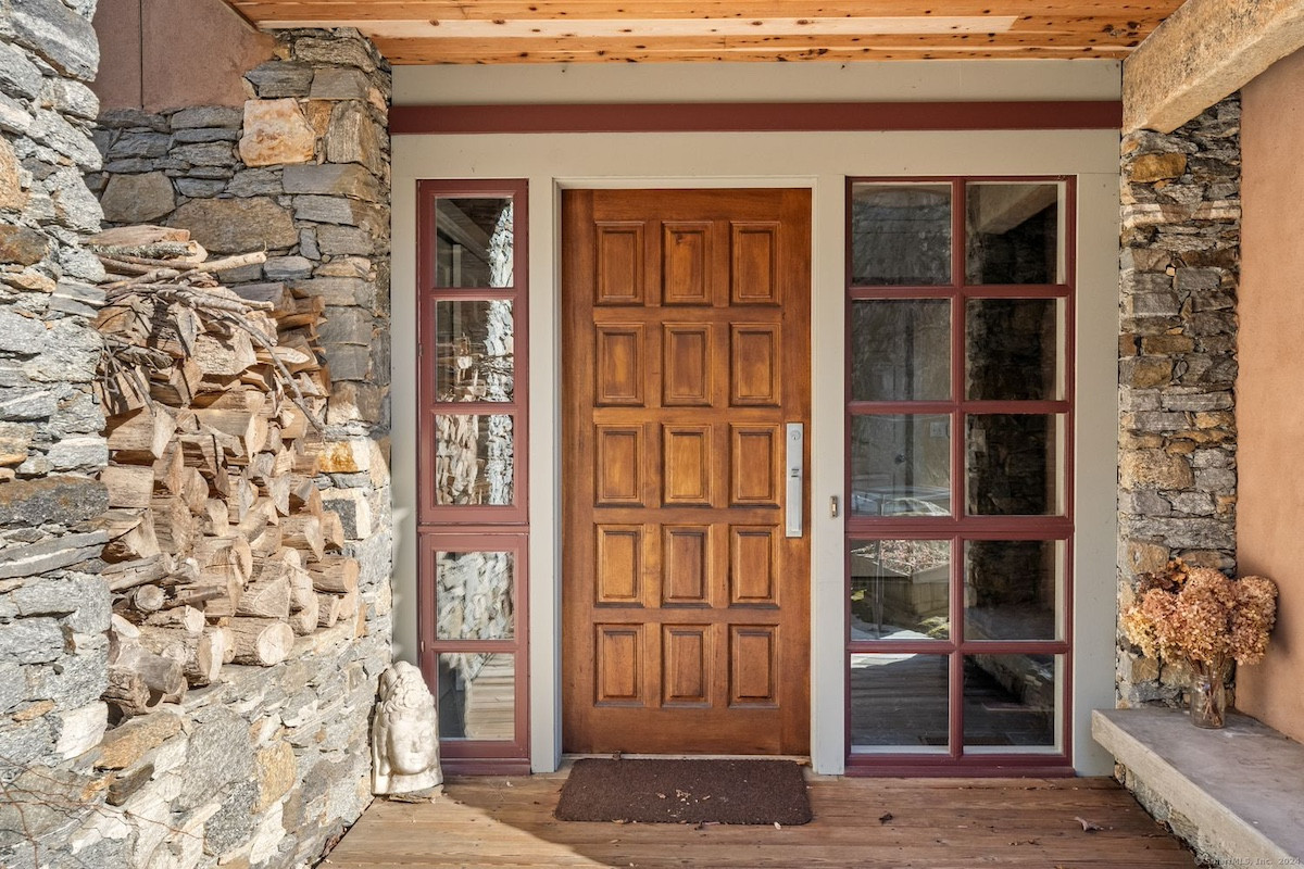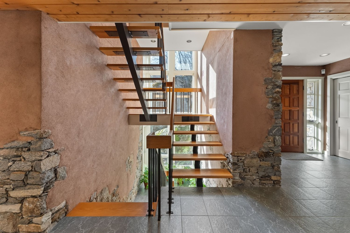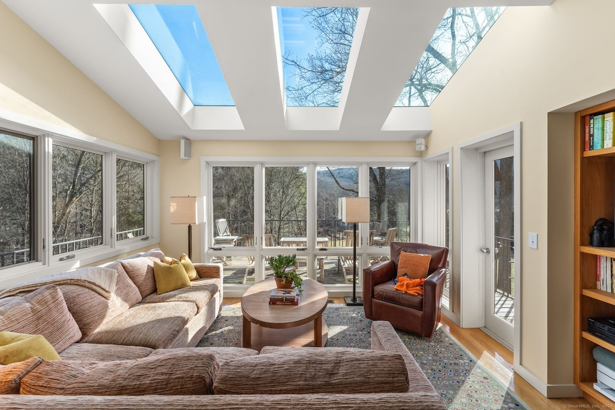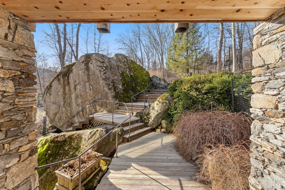 Built in 1991, this Frank Lloyd Wright-inspired home is just five minutes from downtown Kent. Its 4,236 square feet offers a floor plan that creates privacy and separation within the home. There are four bedrooms and two bathrooms, balconies and decks, and three fireplaces. Listed at $1,350,000 by Compass.