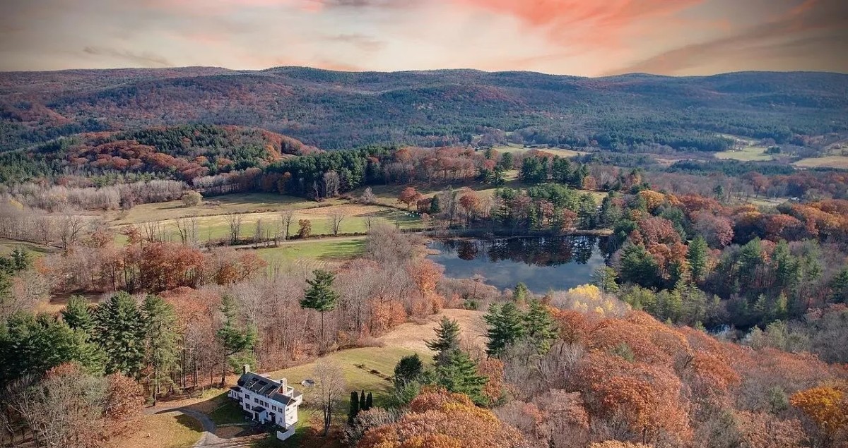 A 1907 home on 25 acres overlooks Shaker Pond in Tyringham.