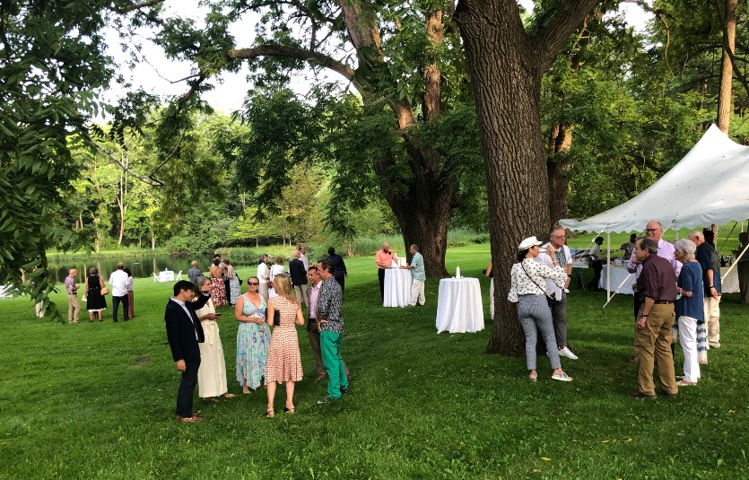 “Shaker Museum is all about building,” said the Museum’s board president Paul Cassidy at its summer gala at a private estate in Old Chatham, New York. on Saturday, Aug. 21. Yes, the organization — which holds the world’s most comprehensive Shaker collection — is in the process of a multimillion-dollar makeover of a Victorian building at the foot of Main Street in Chatham. When it opens in 2023, it will serve as the Museum’s offices and permanent collection. But there is also other building going on, as the Shaker Museum fosters relationships and community by sharing Shaker values and history. Guests at the gala enjoyed drinks and hors d’oeuvres on the vast property, then gathered under a tent for dinner. The real Shakers may not have dined as glamorously, but they might have been impressed with the continuation of Shaker values by their current proponents.