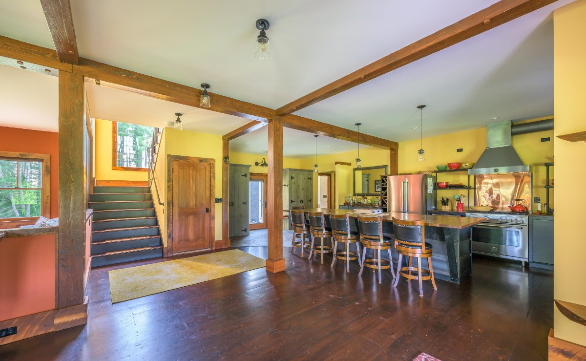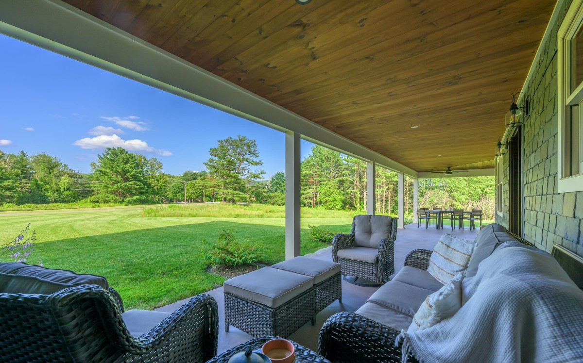 Built in 2018, a New England farmhouse in Lenox offers the classic wraparound porch. There are three bedrooms and four bathrooms, a first-floor bedroom suite with two primary bathroomms and walk-in closets. The kitchen is industrial-chic style. The home offers custom tile work, ductless air conditioning units, electrical hookup in the garage and top-of-the-line building materials and systems. Listed at $2,200,000 by Stone House Properties.